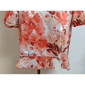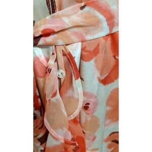 Women's Oscar de la Renta Pink Label Floral Print Ruffle Trim Robe LG