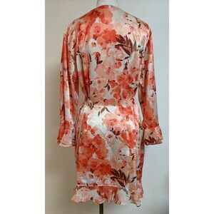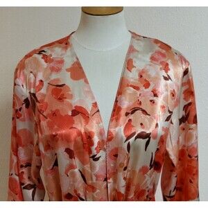 This robe, offered in a lovely pink hue and a size large, features a belted waist for a flattering fit. It's practical too, being machine washable, and the one-button closure adds a discreet and sophisticated finishing touch. Whether you're enjoying a lazy weekend morning or a relaxing evening at home, this robe is a stylish addition to your casual wear.