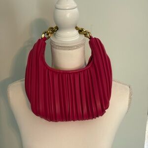 Madison West Pink Pleated Hobo Bag Gold Chain Handle