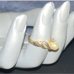 Gold Tone Fashion Ring With Imitation Pearl Sz. 6 1/4 Beautiful band and Ring!