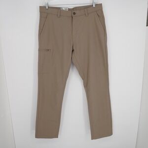 Copper & Oak Mens Tech Pants Sz 36 x 34 Tan Stretch Performance Zip Cargo Pocket