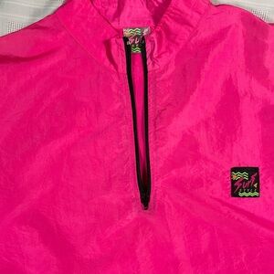 Vintage Surf Style Neon Pink Women’s Windbreaker Pullover Jacket One Size