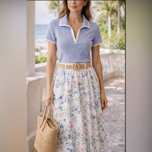 Veronica Beard Kearney Polo Tee With Contrast Piping