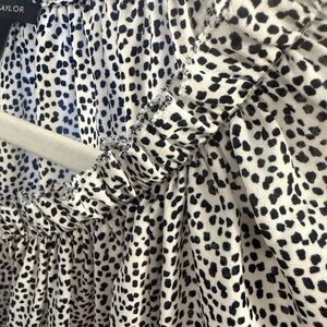Ann Taylor Medium Black Spotted Long Sleeve Keyhole Front Blouse