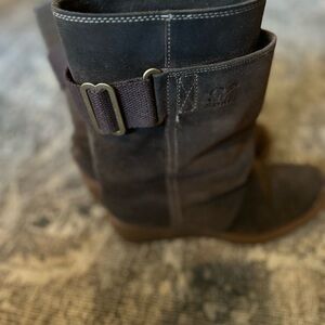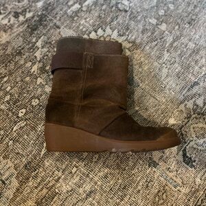 Super comfortable. Great condition minus a bit of wear at toe, as shown. Fits true to size. Pull-on style. Waterproof oiled suede upper. Synthetic insole, sole