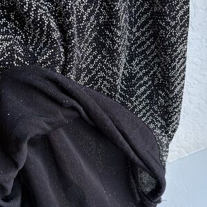 Vintage Windsor Black and Silver Stretchy Patterned Knit Open Back Drape Dress L