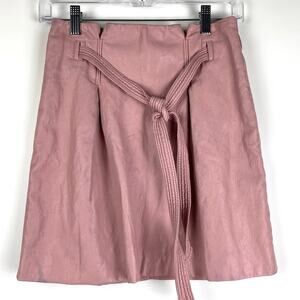 Free People Payton womens skirt in mauve. Faux vegan leather. Mini length. Paperbag waist with tie. Lined. Back zip. Size 0. Small spot on back hem. See pictures. Otherwise excellent condition. See measurements for proper fit.