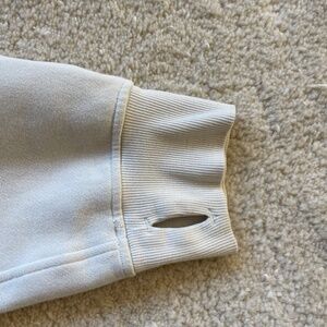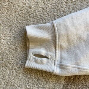 Cozy and structured, this ivory Scuba Funnel Neck is a Lululemon classic. Made from soft, breathable cotton-blend fleece with a thick, premium feel. Features a high funnel neck for warmth, thumbholes for comfort, and deep front pockets for essentials. Lightly worn, no stains or pilling — excellent condition.