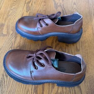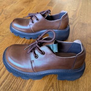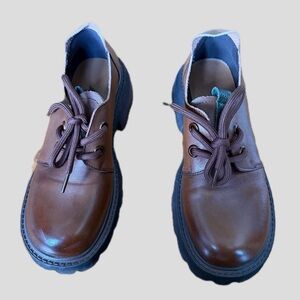 Brown Modern Chunky Platform Oxford Shoes US 6.5–7 New
