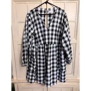 ASOS size 10 black and white Buffalo plaid dress in like new condition. Light weight silky feel. Measures 24” from armpit to armpit. 21” across the waist and it is 36” long. It has pockets!