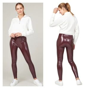 SPANX SPANXshape Faux Patent Leather Vegan Leggings Ruby Red Petite
