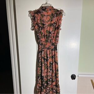 MISA of Los Angeles BoHo style dress with button down collared top. Elasticity around waistline. Bottom has high low hem with ruffles. Very romantic chic dress. Woman’s size small, in Excellent unworn condition.