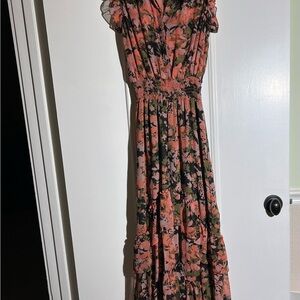 MISA Floral Ruffle Sleeve High Low Hem BoHo Dress