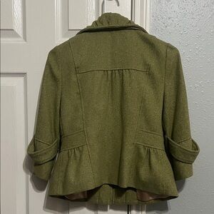 Chic sage green peacoat blazer jacket by Anthropologie-Tabitha. Features a quilted design. Perfect for styling down or classy occasions.