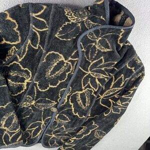 Vintage Floral Asian Jacket Women L Black Gold Carpet Velvet Tapestry Coat
