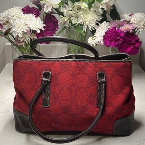 🔥🔥Coach Red Wool & Leather #F1J-7721 Tote/Shoulder Bag EUC