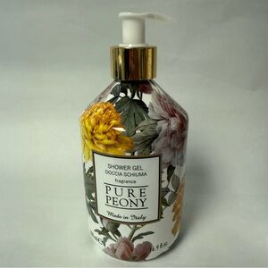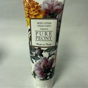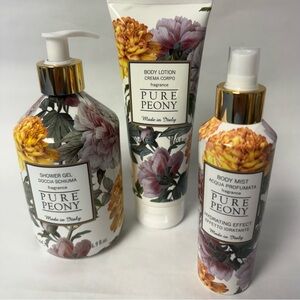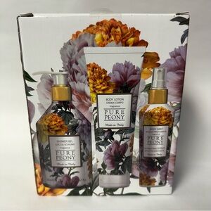 "PEONY" fragrance bath and body gift set, which is manufactured in Italy.
