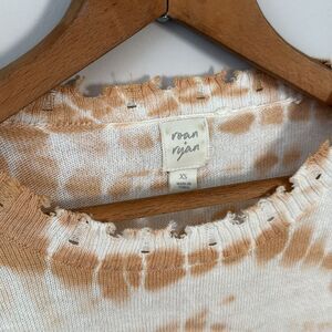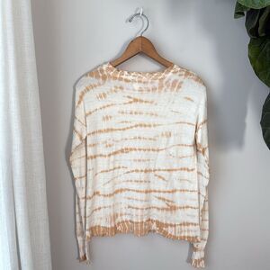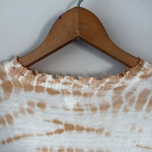 Evereve Roan + Ryan XS Cream/Rust Tie Dye Pullover Raw Hem Sweater
