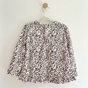 Stylish Carter’s CHILD OF MINE soft fleece leopard print top. Features a pink flower accent. Long sleeves. Ruffle hem bottom. Two button snap back closure for easy on & off. So cute on!