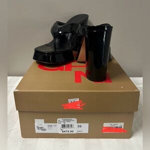 GIA Borghini Black Leather Slip On Thong Sandals Heels Platform (MRSP $475)