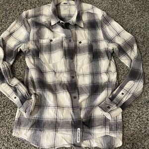 Faded black denim jacket with a classic design. Features button closure and chest pockets. Ideal for casual wear.