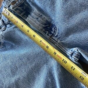 Jeans were cut off to shortened length: approximately length measurement is 27 inseam