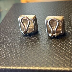 Vintage Chanel 925 silver clip on, clover coco square earrings