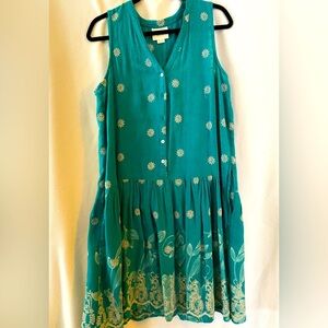Maeve green boho look Sleeveless Dress with White Floral Embroidery