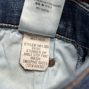 MOTHER Stunner Zip Ankle Step Fray Jeans with Black Side Stripe Size 25