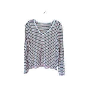 J. Crew Factory white long sleeved button down oxford cloth shirt made of 100% cotton. It measures approximately 20" from pit to pit, 15" between shoulder seams, 24" sleeves, and 26.5" in length. There is a light pink spot on the upper back near the collar, pictured, but in otherwise good used condition. Size medium.