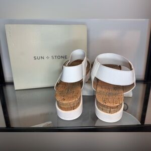 NWT Sun + Stone Melanyy Laceless Open Toe Wedge Sandals White Size 9.5