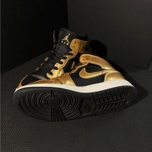 Nike Air Jordan 1 Mid SE Metallic Gold Black Kids Sneakers