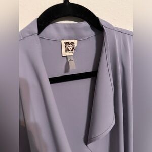 Chic open-front cardigan. Soft purple hue. Ideal for layering.