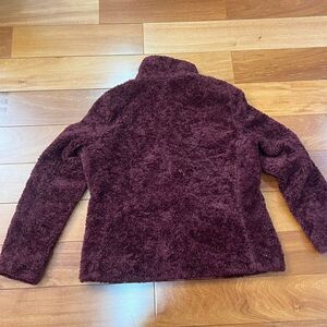 Pendleton Zip Up Burgundy Boucle teddy Fleece Jacket With Plaid Pocket Size L in excellent condition.