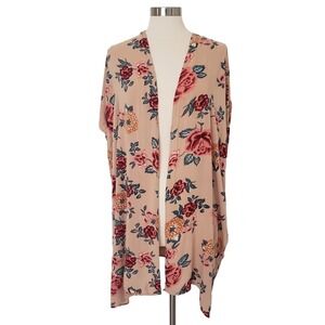 Angie Floral Kimono Cardigan Lightweight Beige Rose Duster M