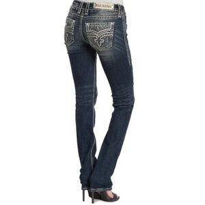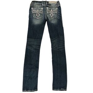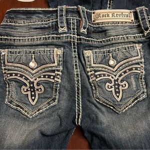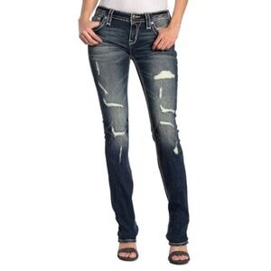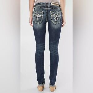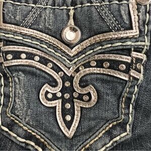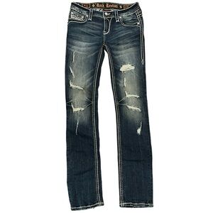 Rock Revival Priya Straight Stretch Jeans distressed rips bling 27 EUC