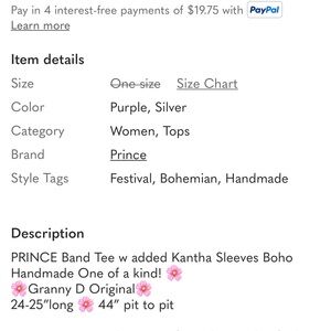 PRINCE Band T with Kantha Sleeves Boho Handmade One of A Kind