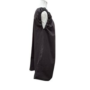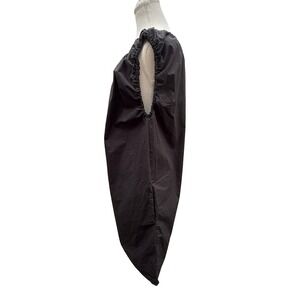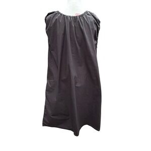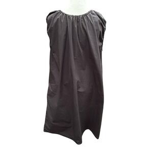 Effortless black dress with a minimalist design and Italian craftsmanship. This sleeveless dress features a gathered elastic neckline and arm holes. Pockets add a subtle detail, while its relaxed shift silhouette ensures a comfortable and flattering fit. The dress is crafted from breathable cotton, making it perfect for warm weather or layering. Pair it with sandals for a casual daytime look, dress it up with heels for an evening out.