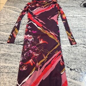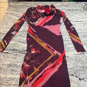 Embrace elegance with this chic burgundy floral dress. Its long sleeves and sophisticated design make it perfect for any occasion.