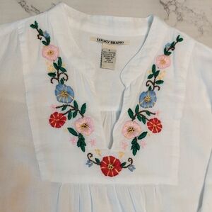 Lucky Brand White Cotton Embroidered Top, Size S