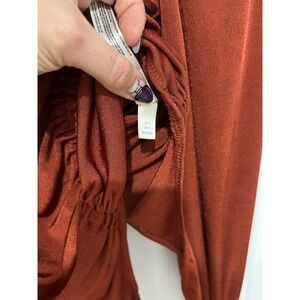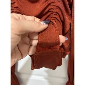 Free People Ruched Long Sleeve Bodysuit Square Neck Rust Orange Size S