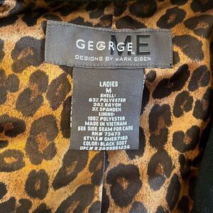 GEORGE by Mark Eisen Black Blazer Jacket Women's Size M Leopard Print Lined