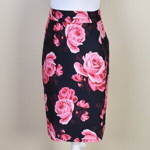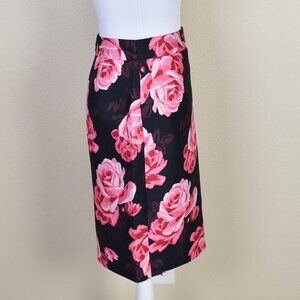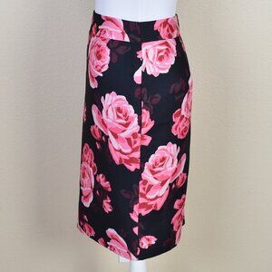 Kate Spade Rosa Roses Pencil Skirt. Size 2. Black with large pink rose print. Back zipper. Fully lined.