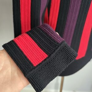 Black, Red, Purple Colorblock Stripe. Ribbed Knit Stretch Fabrication. Banded Hem & Cuffs.