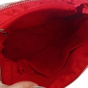 This is a Badgley Mischka red quilted dome satchel bag with silver-toned hardware and studs, made of vegan leather and detachable crossbody strap!