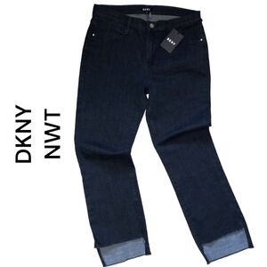 NWT DKNY Cropped Jeans Raw Hem Able To Cuff Mid-Rise Jeans Black Size 10
