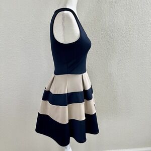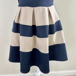 Flashing Lights Size Small Flare Party Dress Striped Dark Navy Blue & Off White