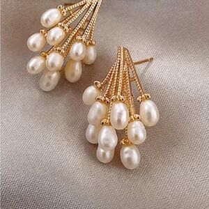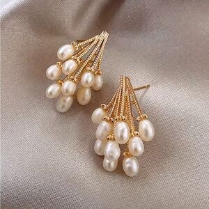 Fashion Jewelry Gold and Cream Pearl Drop Earrings