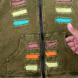 Kyber Outerware Womens XL Full Zip Fleece Hood Sweatshirt Green Rainbow Stripes