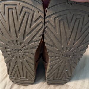 Warm chestnut boots with plush shearling lining. Features branded buttons.